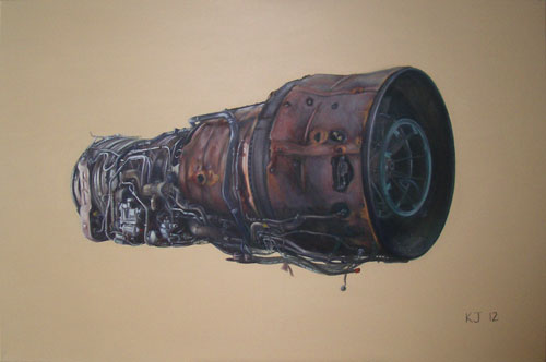 This was a mash-up of various actual aircraft, including the Vulcan at Southend, as well as photos of XH558 at Farnborough. In addition, when I was up at East Fortune in November, I did some sketches from life of the Vulcan there (although my fingers nearly froze in the process!). I finally finished the painting around March. To echo the sound of the famous engines, I named it “Howl”.